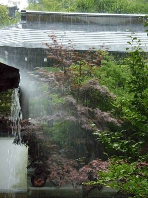 雨上がりの強い日差しに、緑の楓が映えて涼しげです。