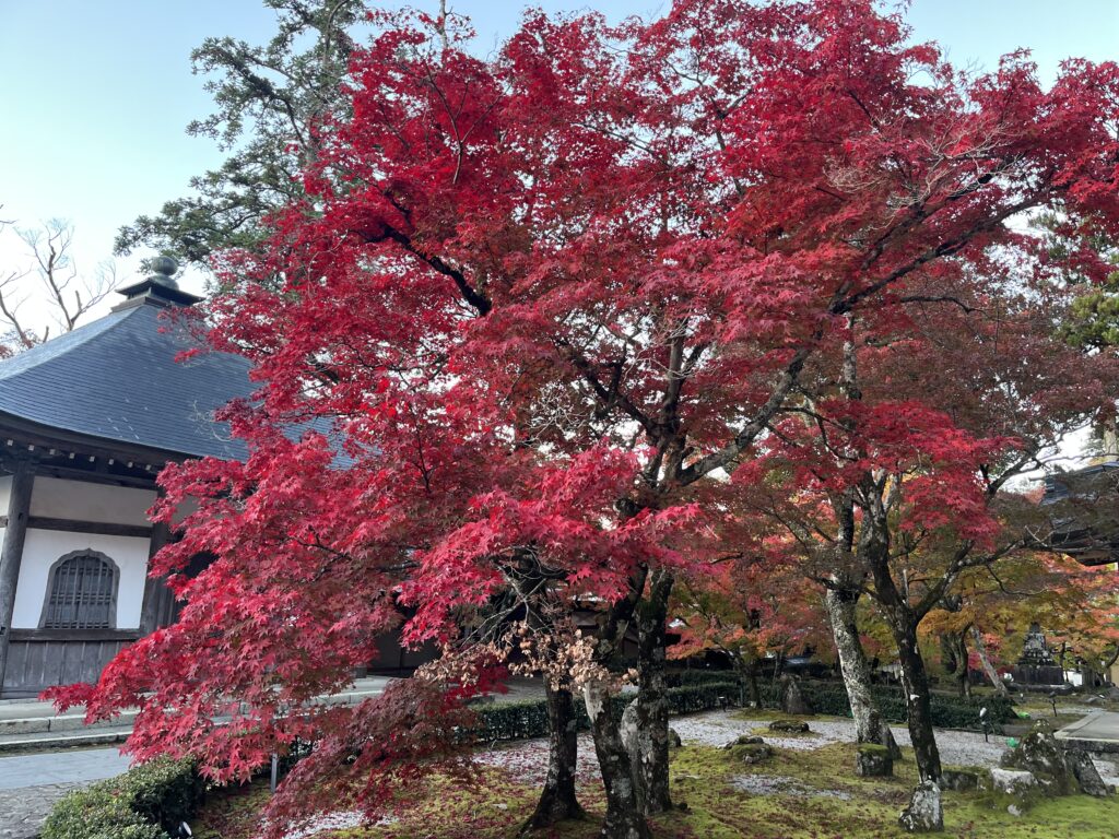 本日も快晴です。今年はまさに紅葉の永源寺という名に恥じない、錦秋の絶景となりました。山門特別拝観も始まり、山門から見るモミジも格別です。毎日10時 11時30分 14時の3回、永源寺門前観光案内所で受付しております。期間は11月24日(土)までです。ぜひふるってご参加下さい。