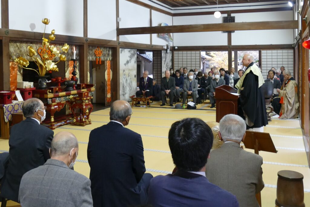 今日と明日の2日間 午前11時より当山護寺会「瑞石会」会員の健康と安全を祈願する法要と説教師さんの法話が営修され、正午から出齋(御斎)が振る舞われます。60名を越す会員の方々が登山され、観楓期の始まりを知らせる風物詩となっております。