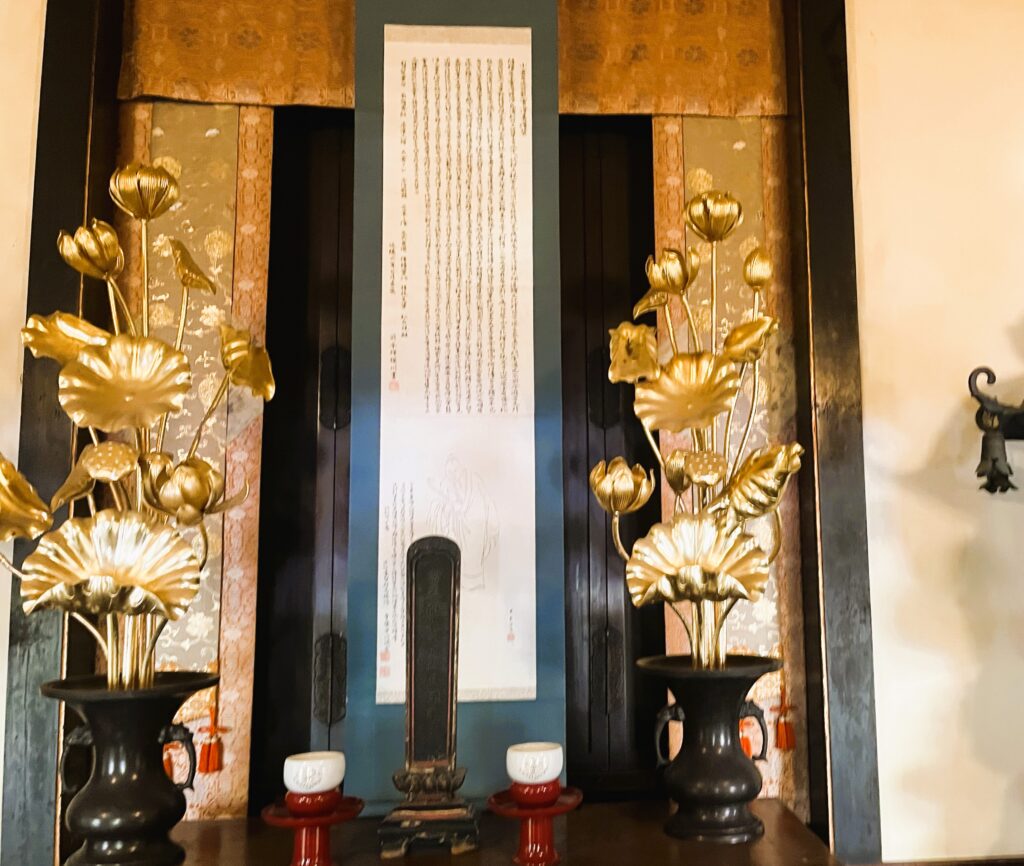 本日4月8日午前10時より方丈で降誕会が執り行われました。初めに浴仏偈を唱えながら灌仏を行い、その後楞厳呪の行道が営修されました。午後からは縁側に花御堂を移して甘茶が振るまわれます。今年はドイツから11名のお客様もお見えになりました。灌仏の様子は去年の写真です。